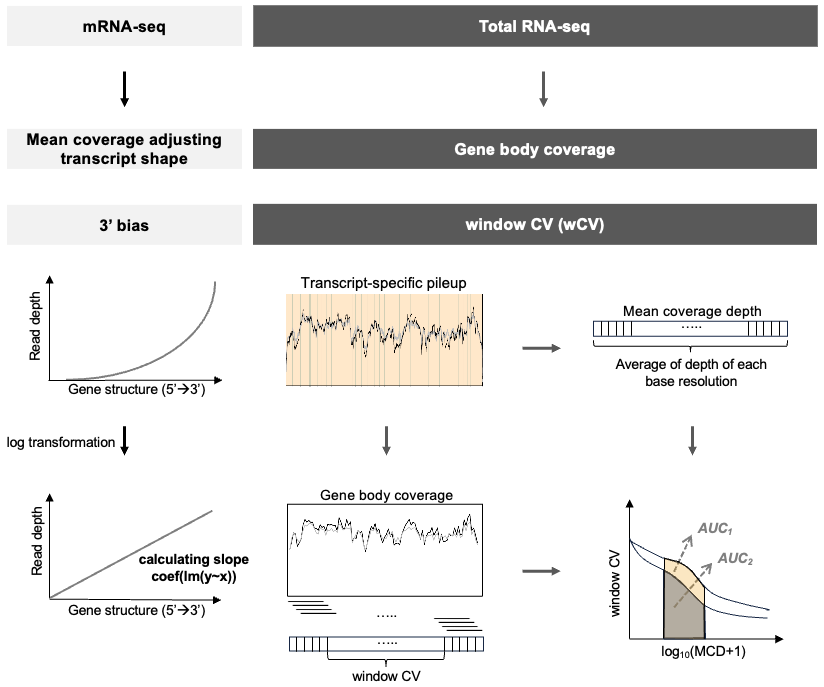 In our package, we focus on a novel approach based on window coefficient of variation (wCV) to assess RNA-seq data quality for total RNA-seq.